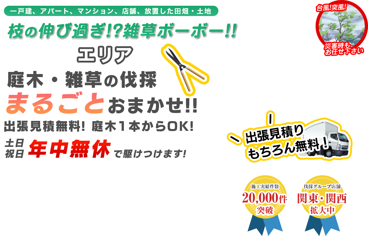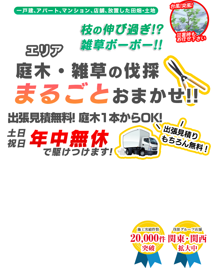 少しでもお客様に還元できるよう最大限の努力をいたします。お電話一本で調査・お見積り!ここまで費用はいただきません。多くのお客様にご用命いただけるよう伐採グループはがんばります。