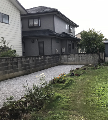 お庭に生い茂った雑草を刈り、整地、敷砂利いたしました。