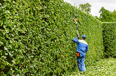 刈り込み作業だけでは上部の枝が混んできて生育に支障がありますので、数年に一度は剪定のような作業をします。